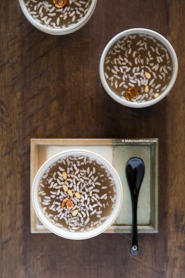 Sikhye (식혜, also known as shikhye or shikae) is a Korean traditional tea / drink often consumed during the Korean festive holidays (e.g. New Year’s Day and Korean Harvest Festival).